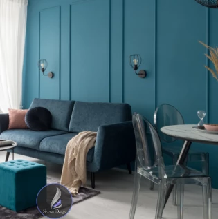 الأزرق الأخضر العميق، مثل لون “الأزرق الفيروزي” أو “الأخضر البترولي”، يعد اختيارًا أنيقًا لغرف الجلوس أو المكاتب. يمكن أن يكون هذا اللون جذابًا للغاية عند تنسيقه مع أثاث أبيض أو ديكورات فاتحة.